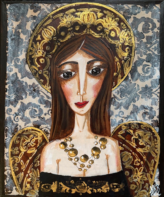 Malowany farbami akrylowymi na płótnie, sygnowany, podpisany na odwrocie.